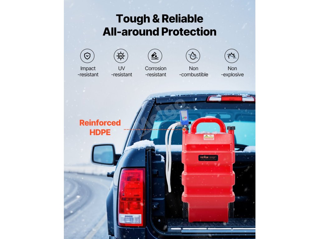 Tato přenosná palivová nádrž vyrobená z odolného materiálu HDPE je odolná proti nárazu, korozi a povětrnostním vlivům. Žádné úniky, žádné problémy - jen spolehlivý, dlouhotrvající výkon, kdekoli ho potřebujete.