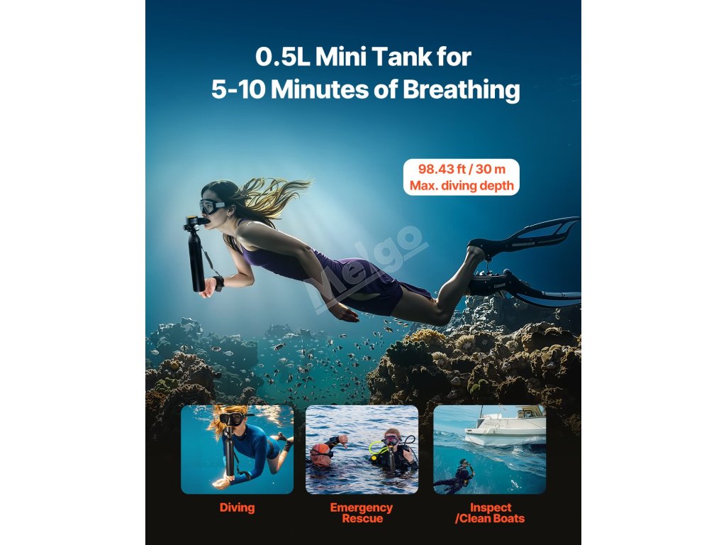 Přenosný potápěčský válec 0.5L, dýchání 5–10 min, hloubka 98.43 feet