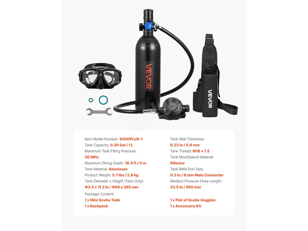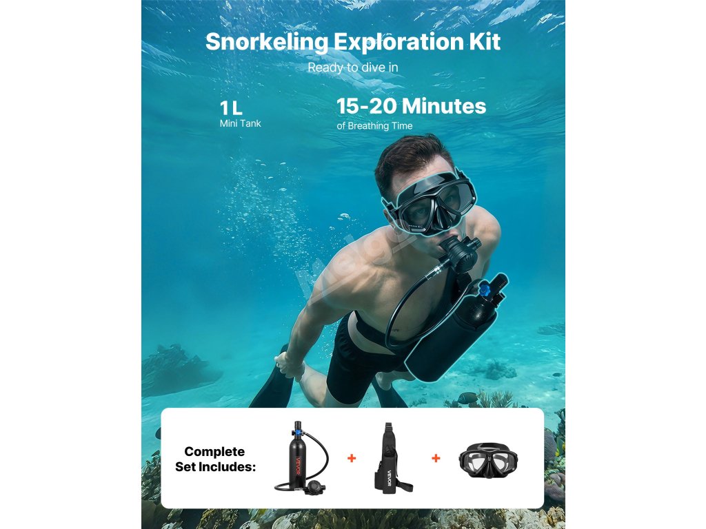 Přenosný potápěčský válec 1 l, 20 min ponor, s batohem a brýlemi