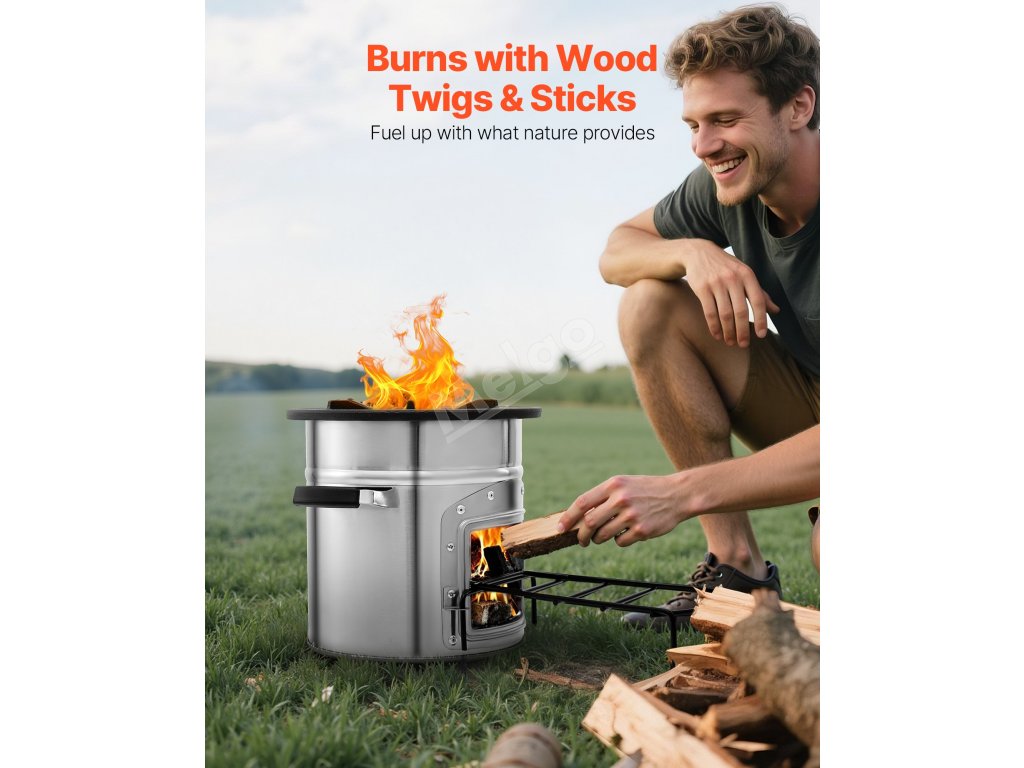 Náš raketový vařič na dřevo je kompatibilní s běžným kempingovým nádobím včetně pánví, woků, holandských trub a síťových grilů. Žebrovaná opěrná plocha podporuje rovnoměrné rozložení tepla.