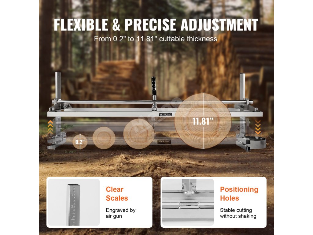 Stupnice pro řezání vzduchovou pistolí zajišťují velmi přesné a jasné měření. A polohovací otvory řetězové pily zabraňují chvění pro přesné určení tloušťky řezu.
