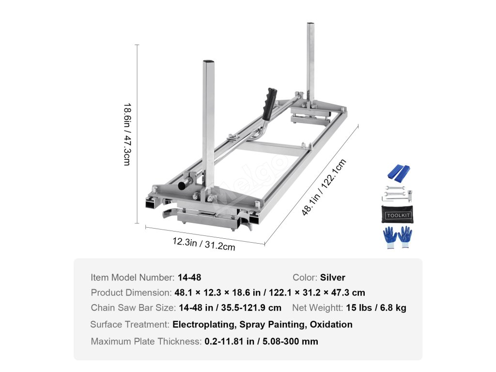 | Velikost lišty řetězové pily | 14-48 palců / 355-1219 mm |