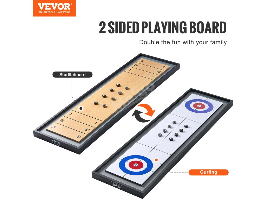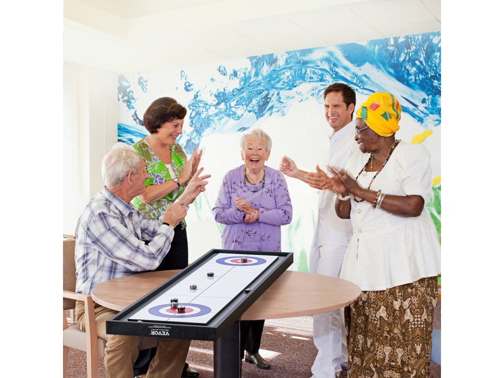 Užijte si s rodinou dvojnásobné vzrušení, když si na jedné straně zahrajete shuffleboard a na druhé curling.