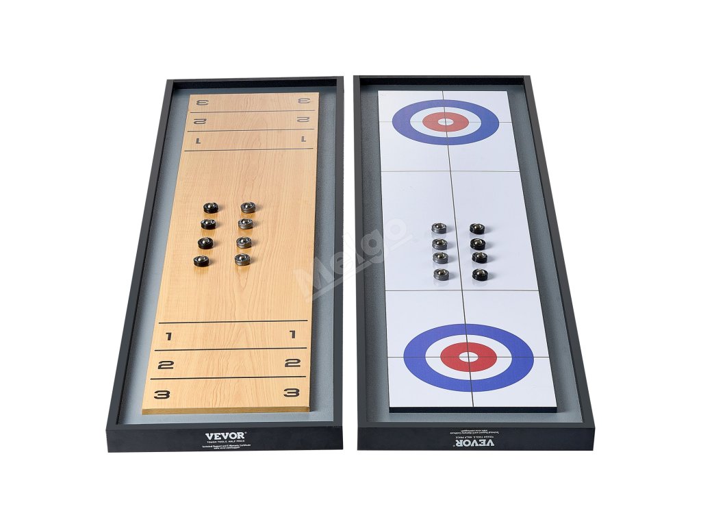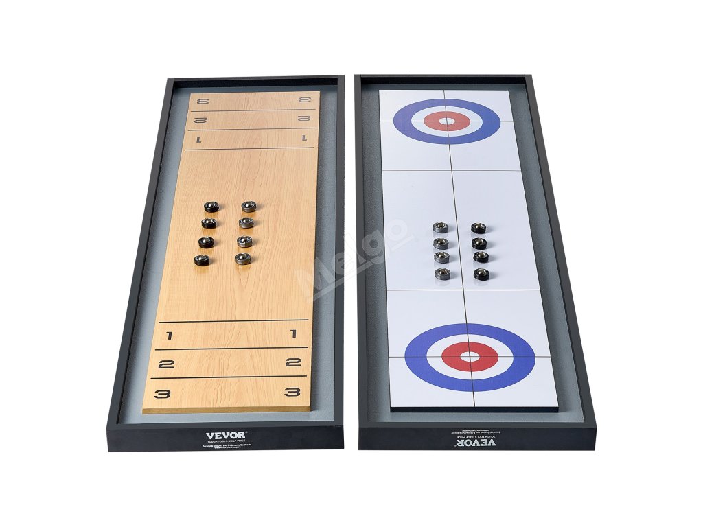 Přenosný stolní shuffleboard a curling 2 v 1, 45", oboustranný, 8 puků