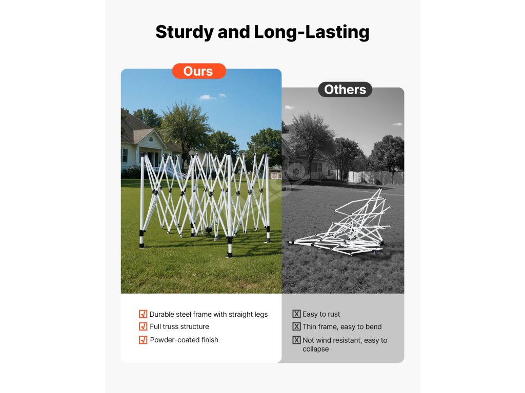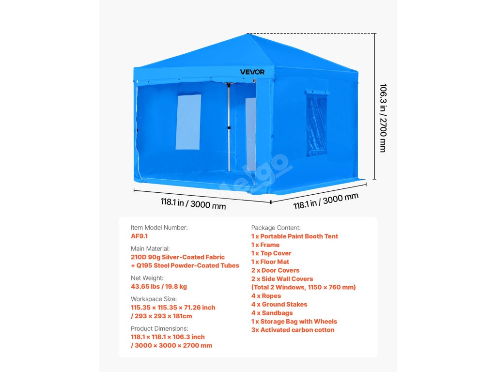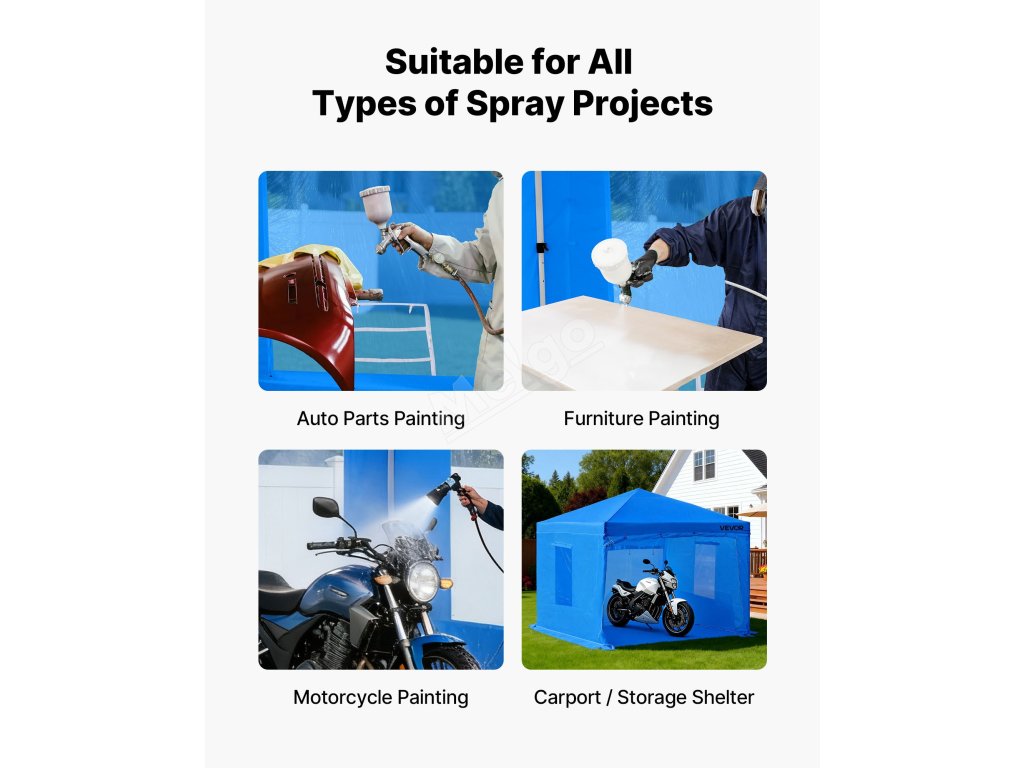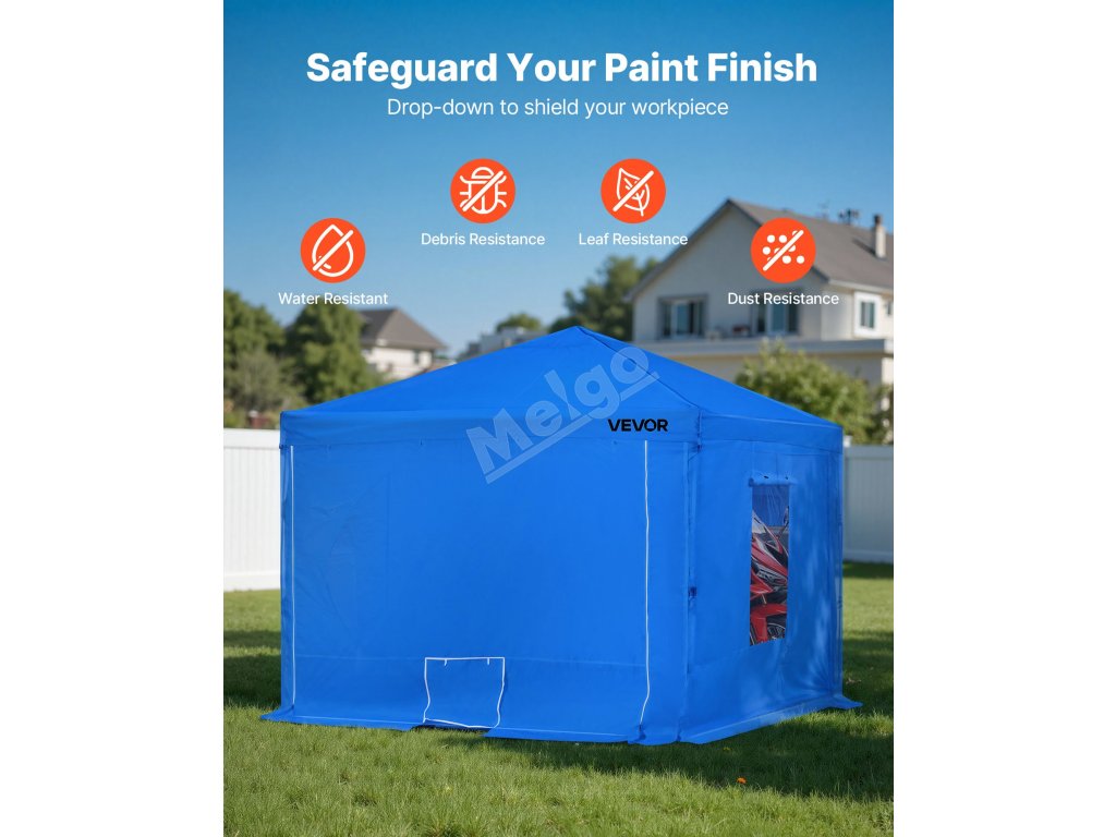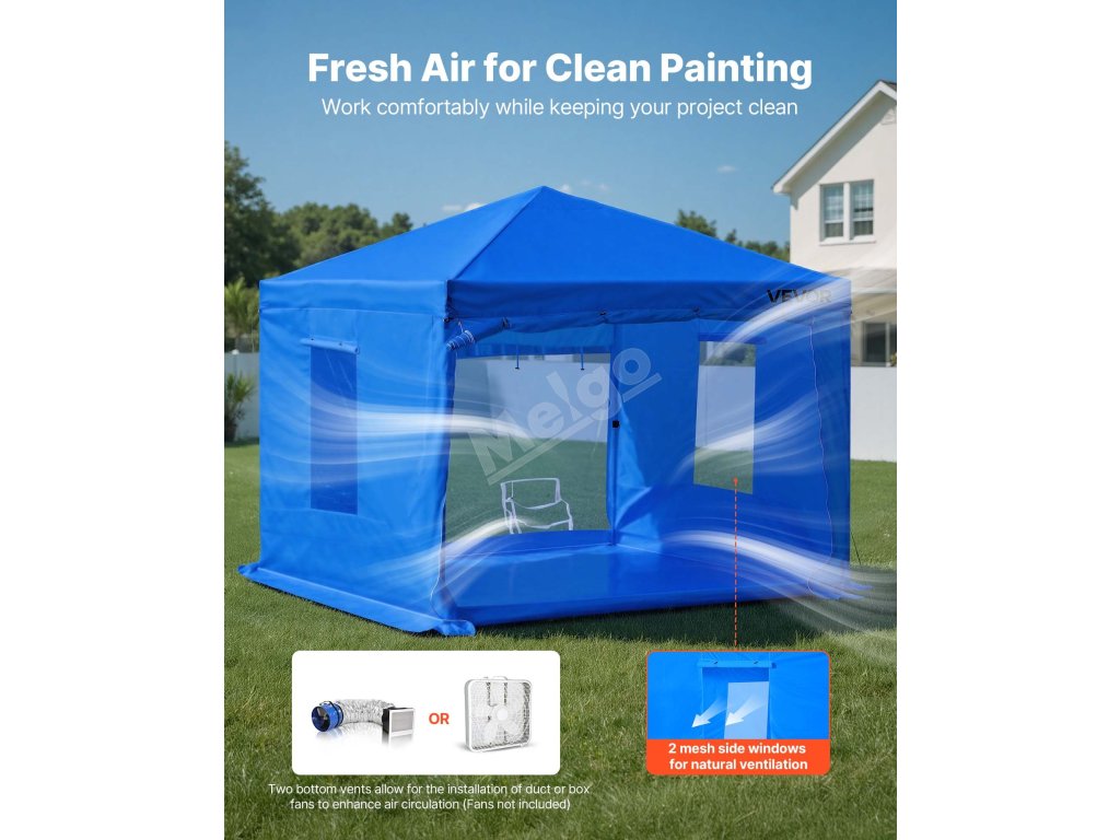 Tento přenosný stan s lakovací kabinou nabízí pracovní prostor o rozměrech 115,35 (D) x 115,35 (Š) x 71,26 (V) palců/293 x 2930 x 181 cm, který pojme auta, nábytek i kutilské projekty. Skládací kovový rám a větraná 2 okna ze síťoviny umožňují snadné nastavení a zároveň podporují malování, skladování nebo venkovní aktivity.