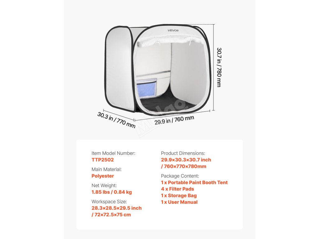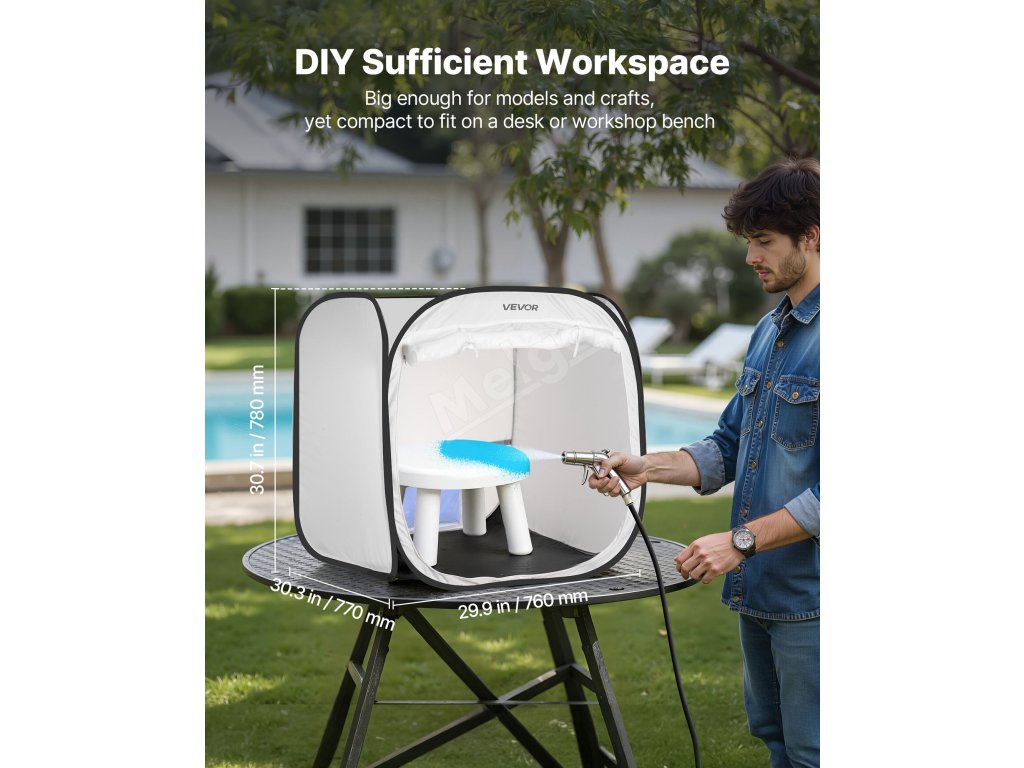 Náš přenosný stan s malířskou kabinou poskytuje pracovní prostor o rozměrech 28,3 (D) x 28,5 (Š) x 29,5 (V) palce/72 x 72,5 x 75 palců s vyskakovací konstrukcí, která nevyžaduje žádnou přípravu. Je skládací pro snadné skladování a rychlé sbalení během několika minut, má plynulé proudění vzduchu a voděodolnou tkaninu, ideální pro nábytkové díly a kutilské projekty.