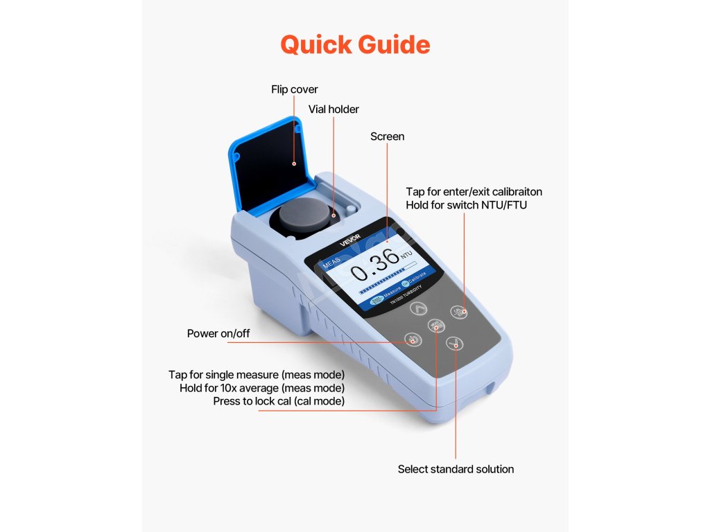 Přenosný turbidimetr 0-1000 NTU ISO7027, rychlé měření, s pouzdrem