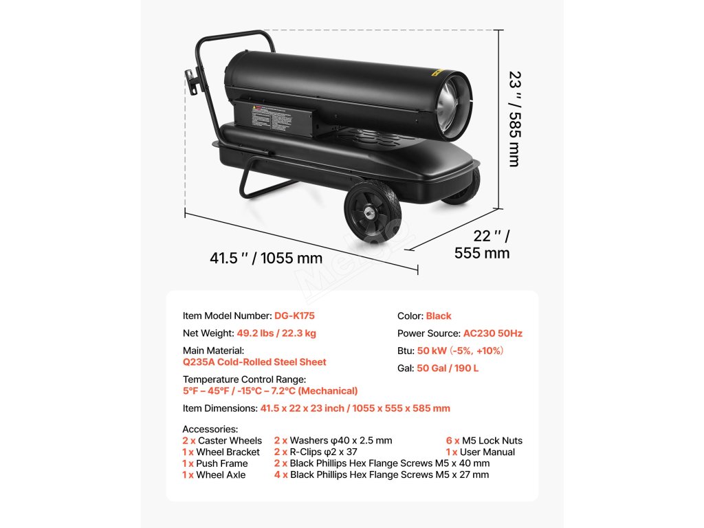 Přenosný vzduchový ohřívač diesel/kerosén 50 kW, s kolečky