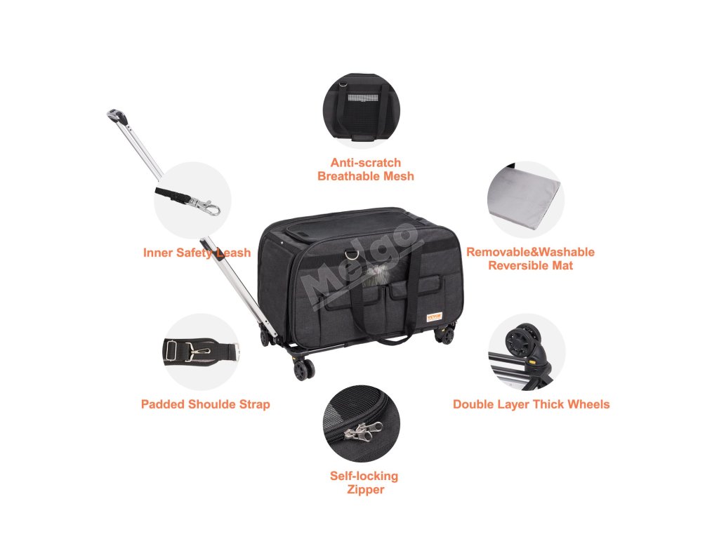 Naše pojízdná přepravka pro domácí mazlíčky je navržena s ohledem na pohodlí a bezpečnost vašeho mazlíčka a zajišťuje stylové a bezpečné cestování.