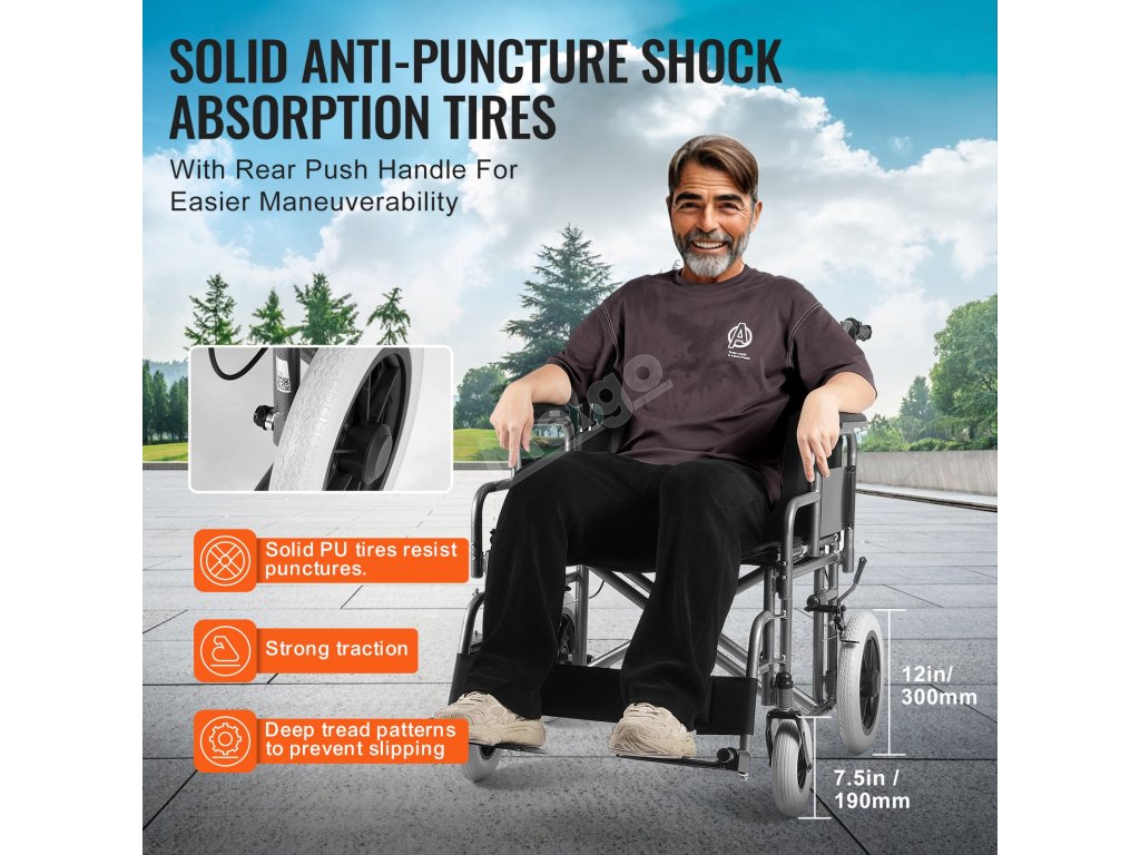 Tento invalidní vozík s nastavitelnými područkami a opěrkami nohou usnadňuje nastupování a vystupování, takže je ideální pro seniory a další osoby, které potřebují větší pomoc.