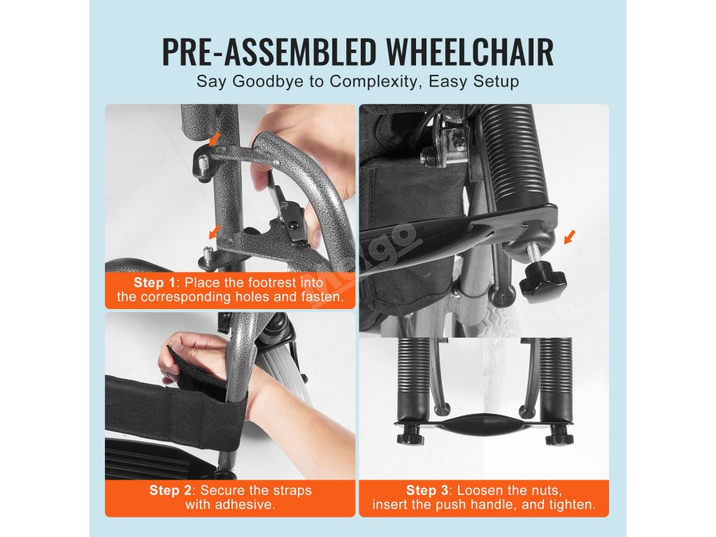 Kompaktní a snadno skladovatelný invalidní vozík se snadno skládá pro pohodlné cestování a dojíždění. Díky pohodlným rukojetím je univerzální pro jízdu metrem, vysokorychlostní železnicí, lodí a letadlem, což zvyšuje vaše pohodlí při cestování.