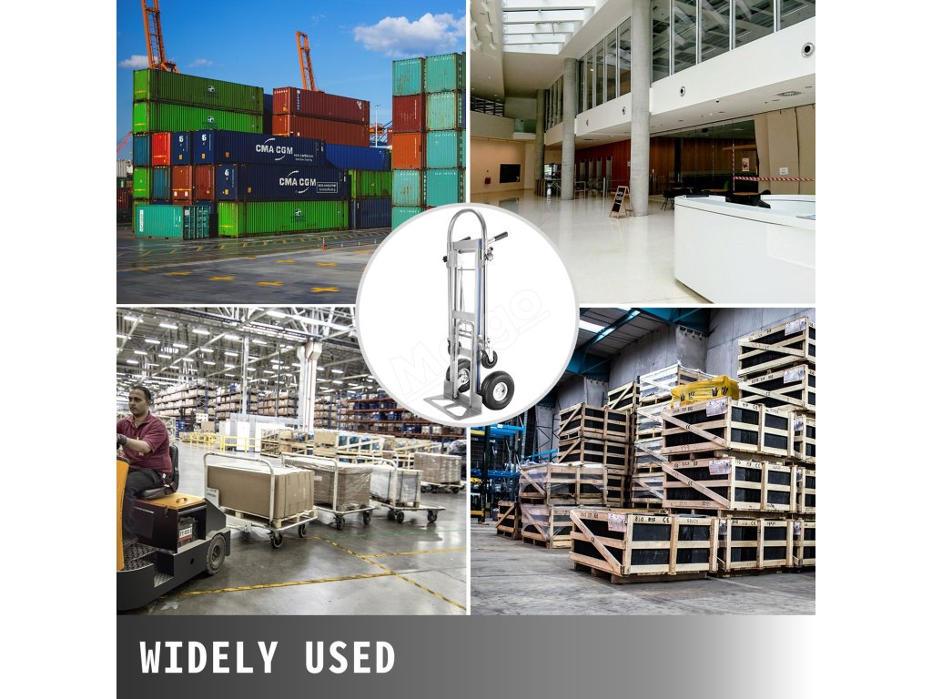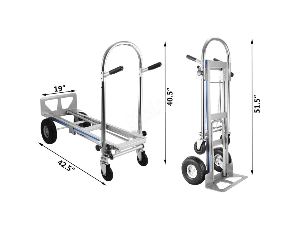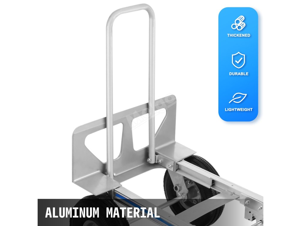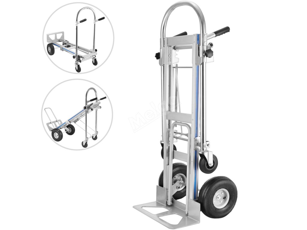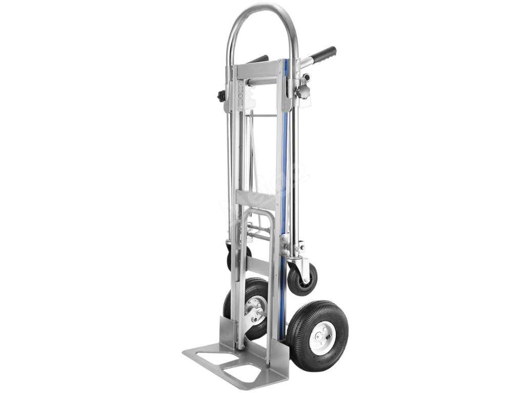 Jedná se o hliníkový ruční vozík. Tento hliníkový ruční vozík se snadno skládá z polohy ručního vozíku do polohy užitkového vozíku. Nechte tento lehký ruční vozík, aby za vás zvedal těžké věci. Díky ergonomickému designu je ideální pro použití doma nebo v práci. Snadno se přemění na dvoukolový stojící vozík, čtyřkolový vozík nebo asistovaný čtyřkolový ruční vozík pouze jednou rukou, bez nářadí a kolíků.