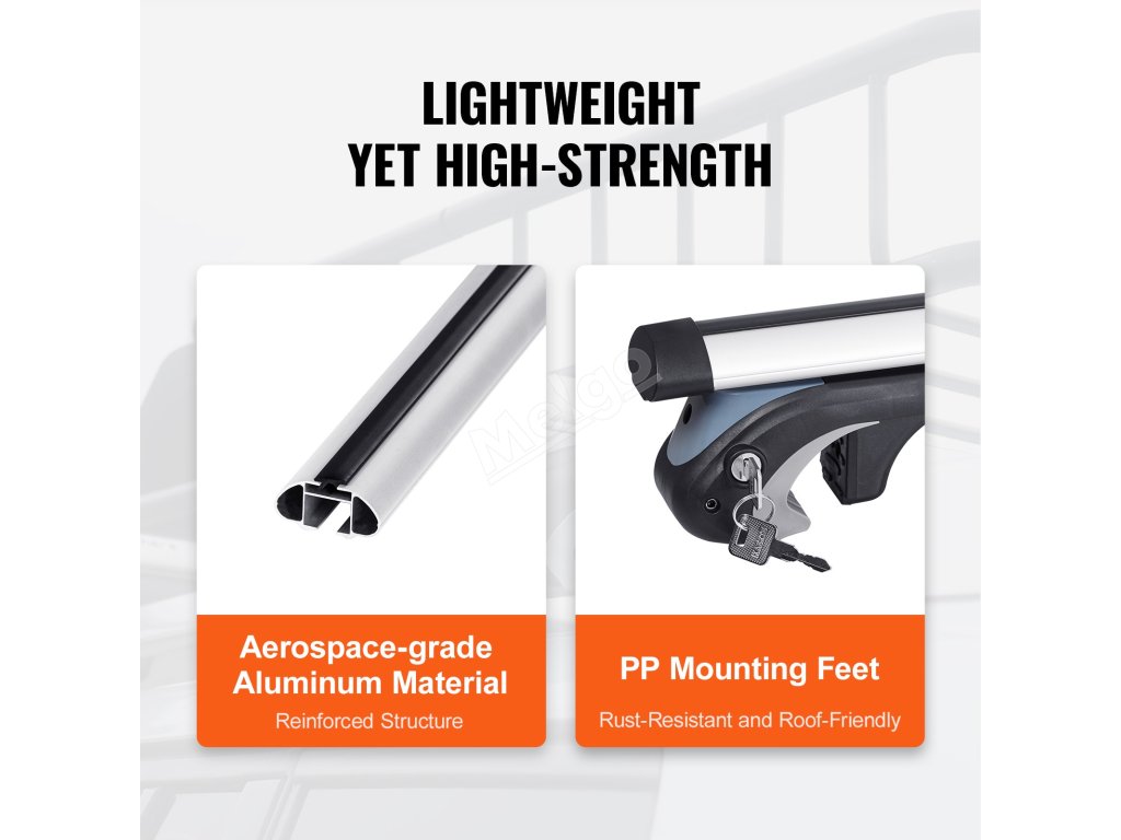 Příčné tyče střešního nosiče jsou vyrobeny z nejkvalitnějších materiálů včetně zesíleného leteckého hliníku; naše tyče střešního nosiče jsou navrženy pro dlouhodobé používání.