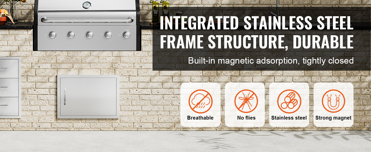 Tato přístupová dvířka ke grilu jsou vyrobena z robustní konstrukce z vysoce kvalitní nerezové oceli, jsou odolná proti korozi, vodotěsná, odolná proti poškrábání, snadno se čistí a nezanechávají stopy ani skvrny. Zcela bezešvá konstrukce, žádné ostré rohy, což zajišťuje bezpečnost uživatele.