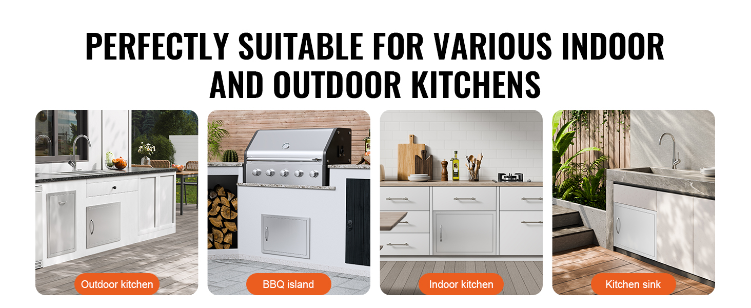 Kuchyňský ostrůvek BBQ je ideální pro vnitřní/venkovní kuchyně a všechny ostatní venkovní povětrnostní podmínky. Používá se hlavně pro venkovní kuchyně, skříňky na grilování, grilovací desky, venkovní skříňky a venkovní grily.
