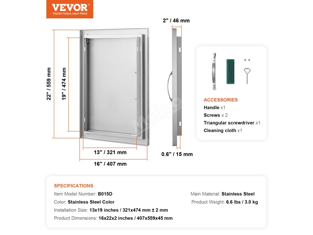 Tyto přístupové dveře mají přesné rozměry pro snadné zpracování a instalaci. Na výběr máte z několika velikostí a stylů, které vám zajistí větší pohodlí při venkovním grilování. Je to vaše nejlepší volba pro domácí potřeby.