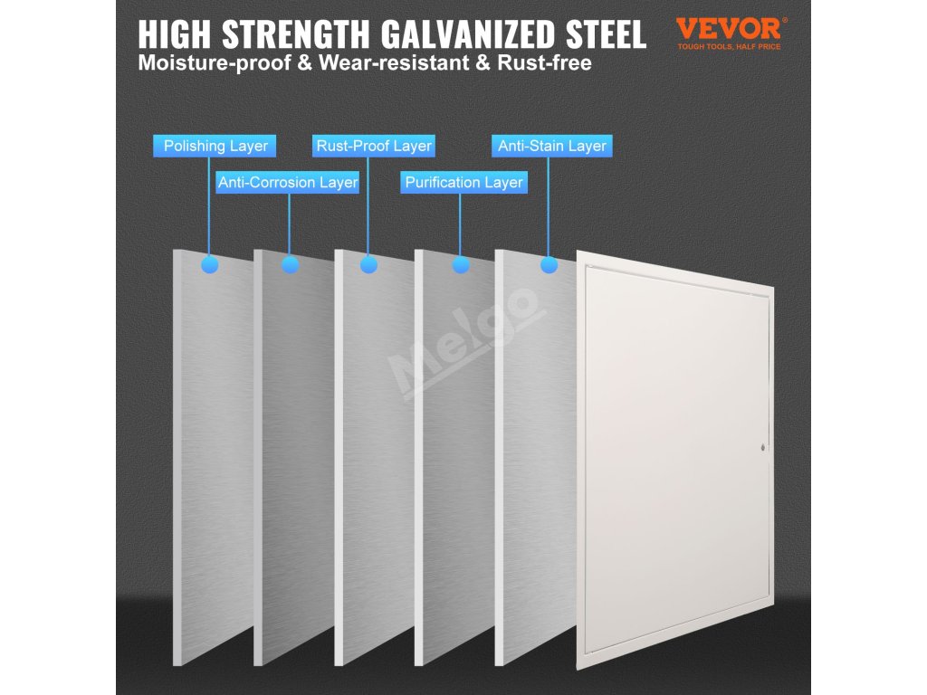 Tento přístupový panel je vyroben ze silné pozinkované oceli, která zaručuje delší životnost a větší stabilitu. Je vybaven dvířky pro rychlou výměnu a kontrolním otvorem o úhlu 165°, což usnadňuje přístup k zařízení za účelem údržby a zjednodušuje proces oprav.