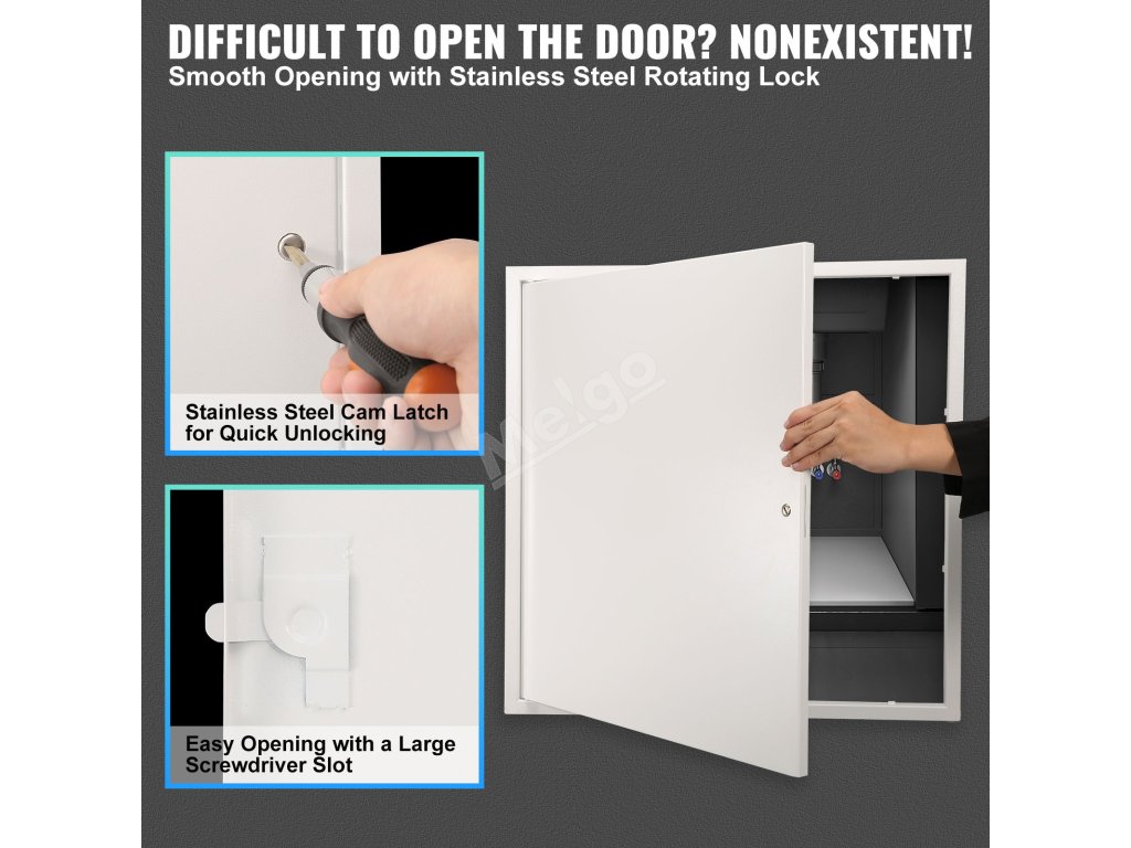 Používá vačkový zámek z nerezové oceli a umožňuje rychlé otevírání a zavírání. Panel je vybaven velkým otvorem pro šroubovák, který usnadňuje otevírání dveří pouhým šroubovákem.