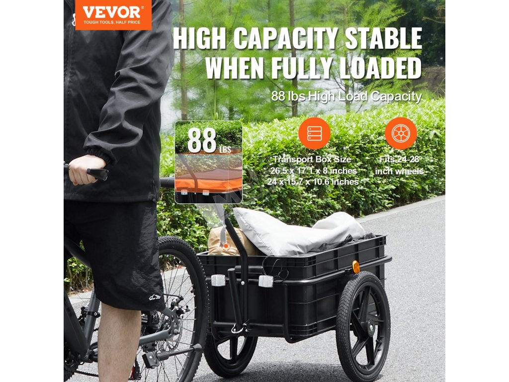 Tento nákladní přívěs na kolo je dokonalým nosičem vybavení, který unese až 88 kilogramů hmotnosti. Má dostatek prostoru pro všechny věci, které potřebujete - od kempinkového vybavení až po věci denní potřeby. Navíc je vhodný pro kola s 24" až 28" koly, takže je univerzální pro jakoukoli jízdu.