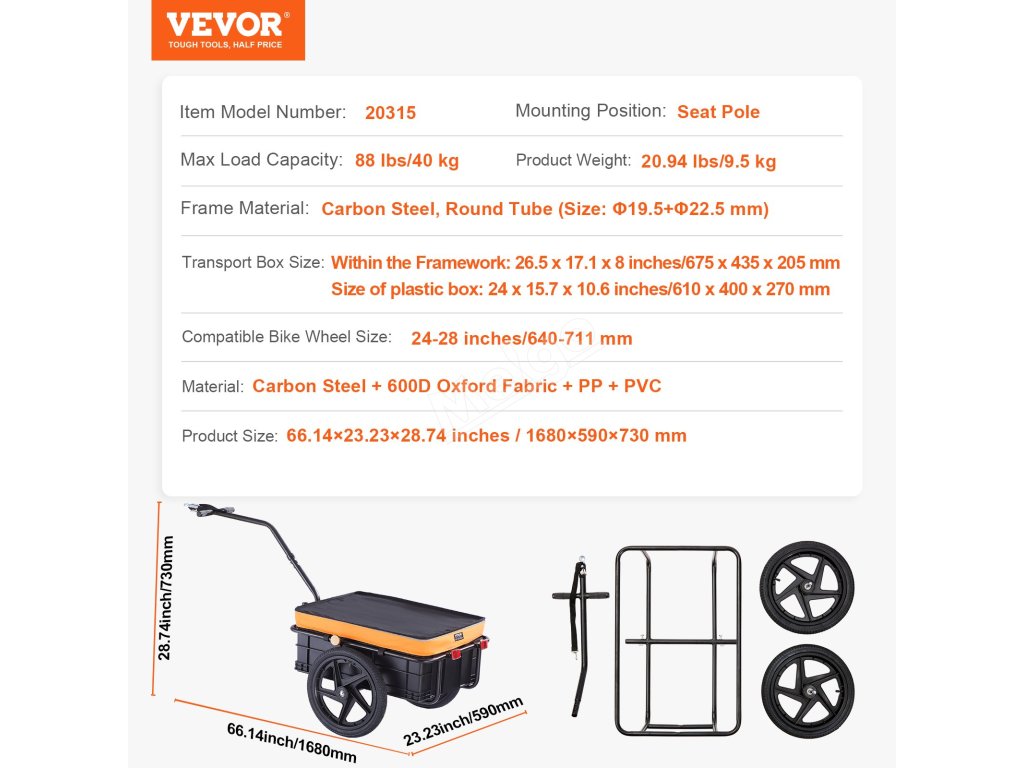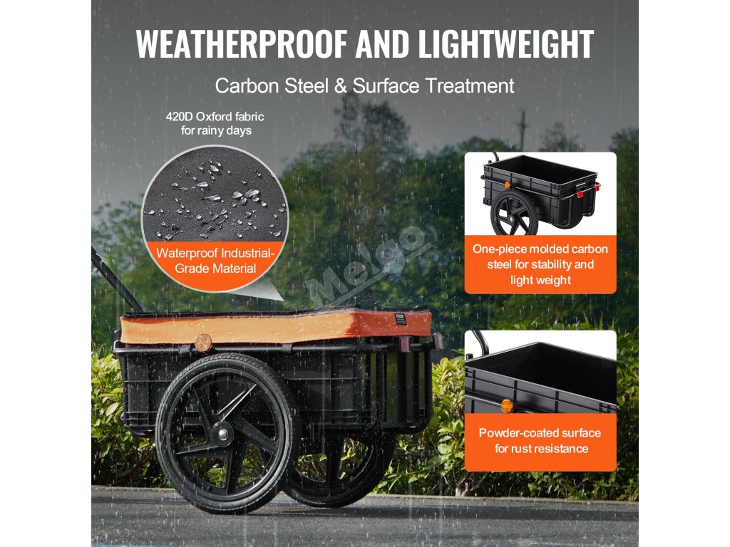 Tento přívěs na kolo je vyroben z průmyslové uhlíkové oceli a je lehký a robustní. Díky práškové povrchové úpravě se nemusíte obávat koroze. A díky přidanému potahu z tkaniny 600D Oxford zůstanou vaše věci v suchu, ať se děje cokoli. Je připraven na každé dobrodružství, ať prší nebo svítí slunce!