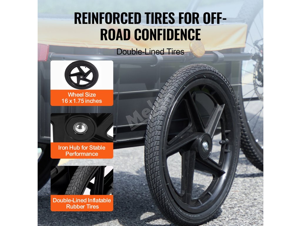 Díky sportovním pneumatikám a železným nábojům bude tento přívěs na kolo stabilní v každém terénu. Ať už jedete po chodníku nebo vyrážíte na stezky, zůstanete na silnici.