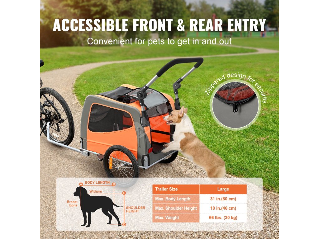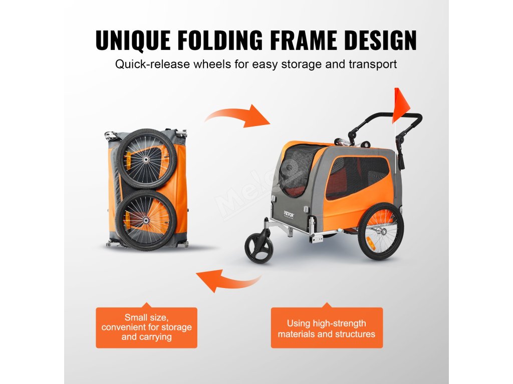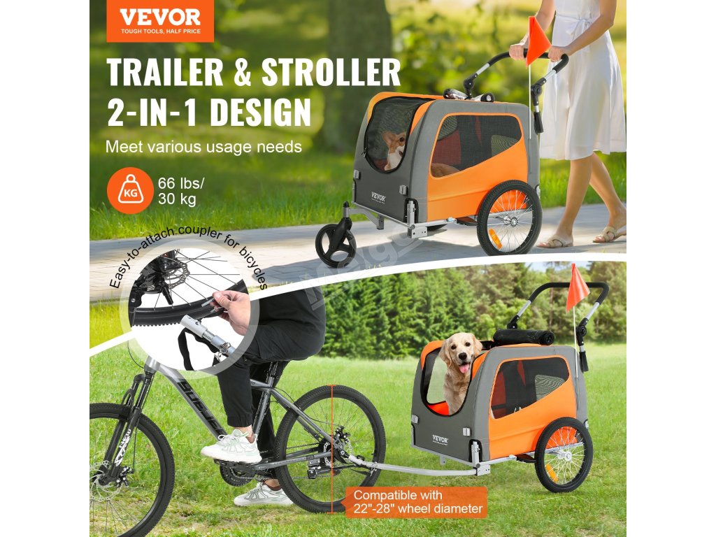 Přívěs pro psa na kolo 2 v 1, nosnost 66 lbs, skládací rám