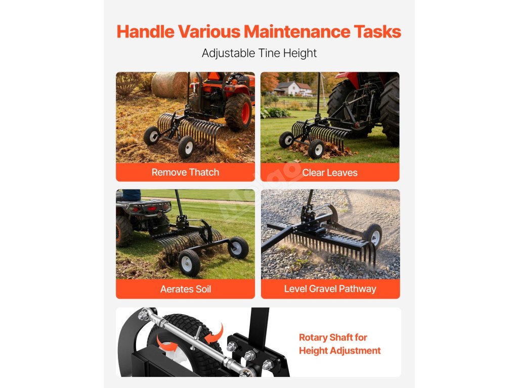 Vylepšené ocelové hroty o tloušťce 0,33" pro vyšší pevnost a odolnost. Rozteč hrotů 0,98" je ideální pro odstraňování plevele, listí a kypření zhutněné půdy.