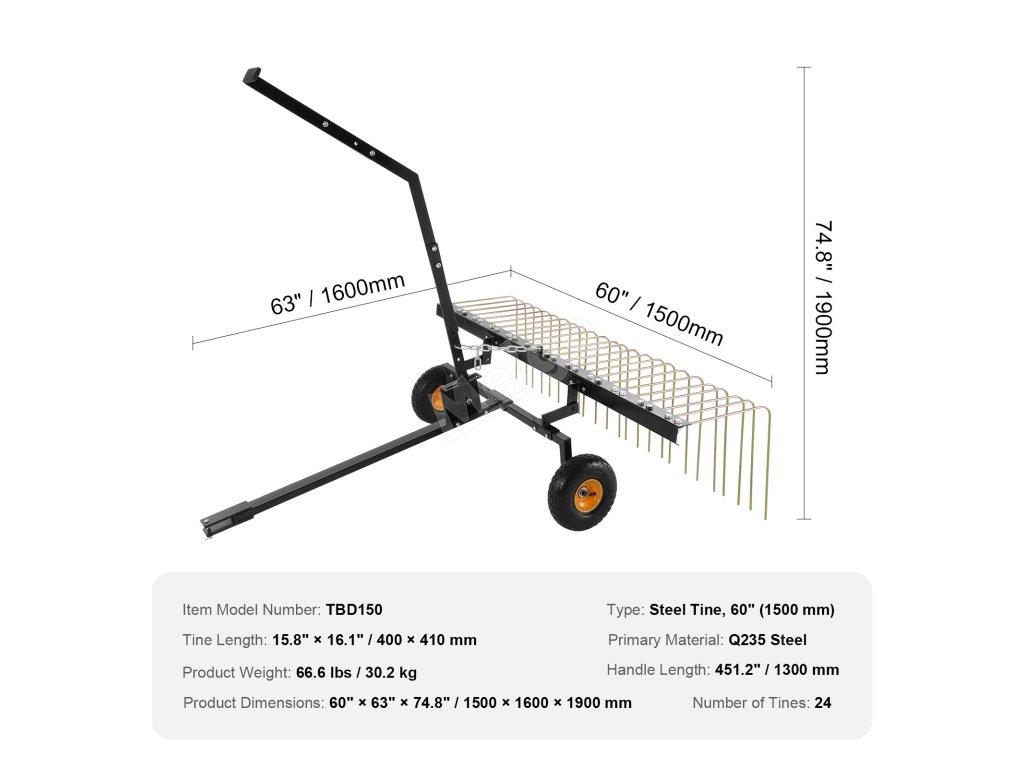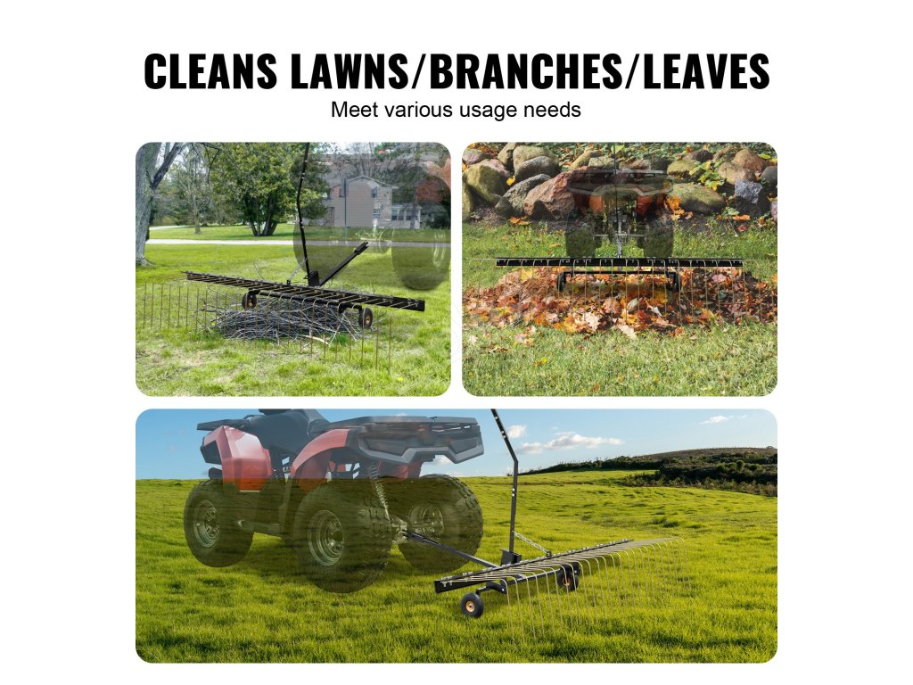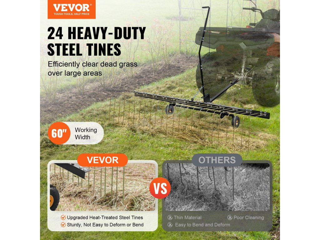 Tento 60'' vertikutátor je vynikající při sběru jehličí, slámy, listí a trávy, takže je základním nástrojem pro udržování čistoty a pořádku na dvoře.