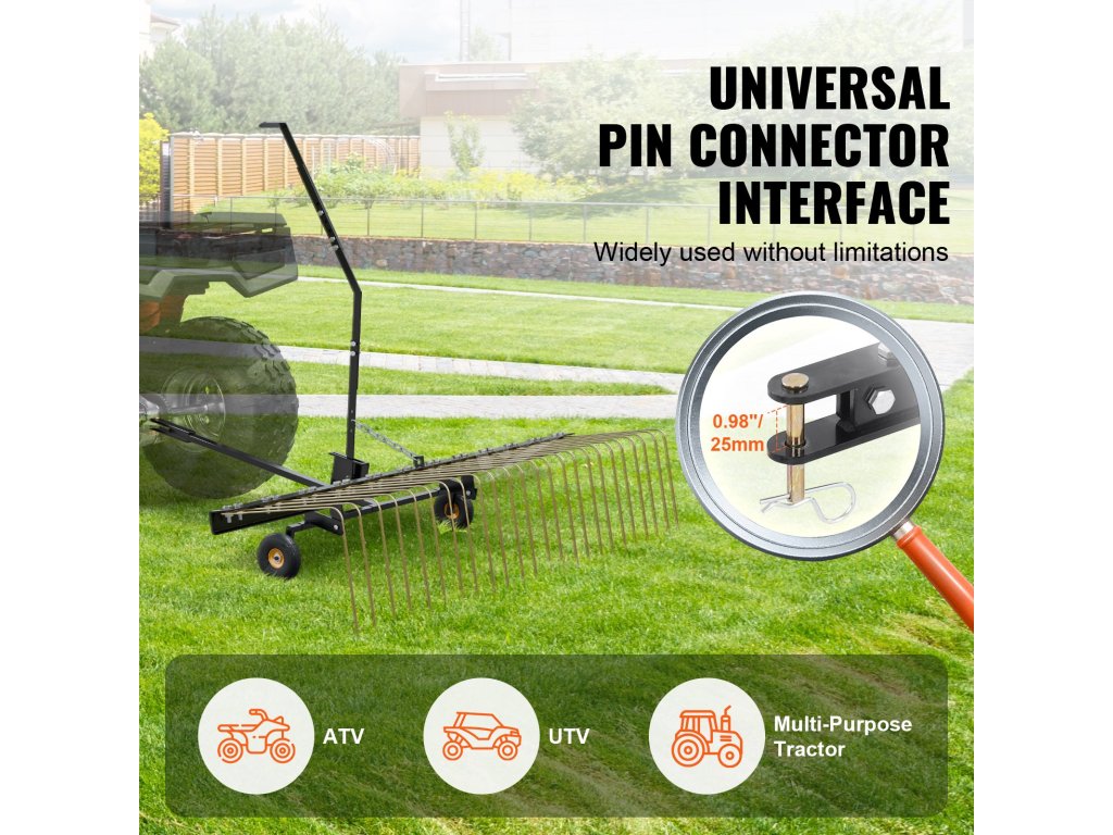 Přívěsný vertikutátor 60-inch, 24 ocelových zubů, pro ATV a sekačku