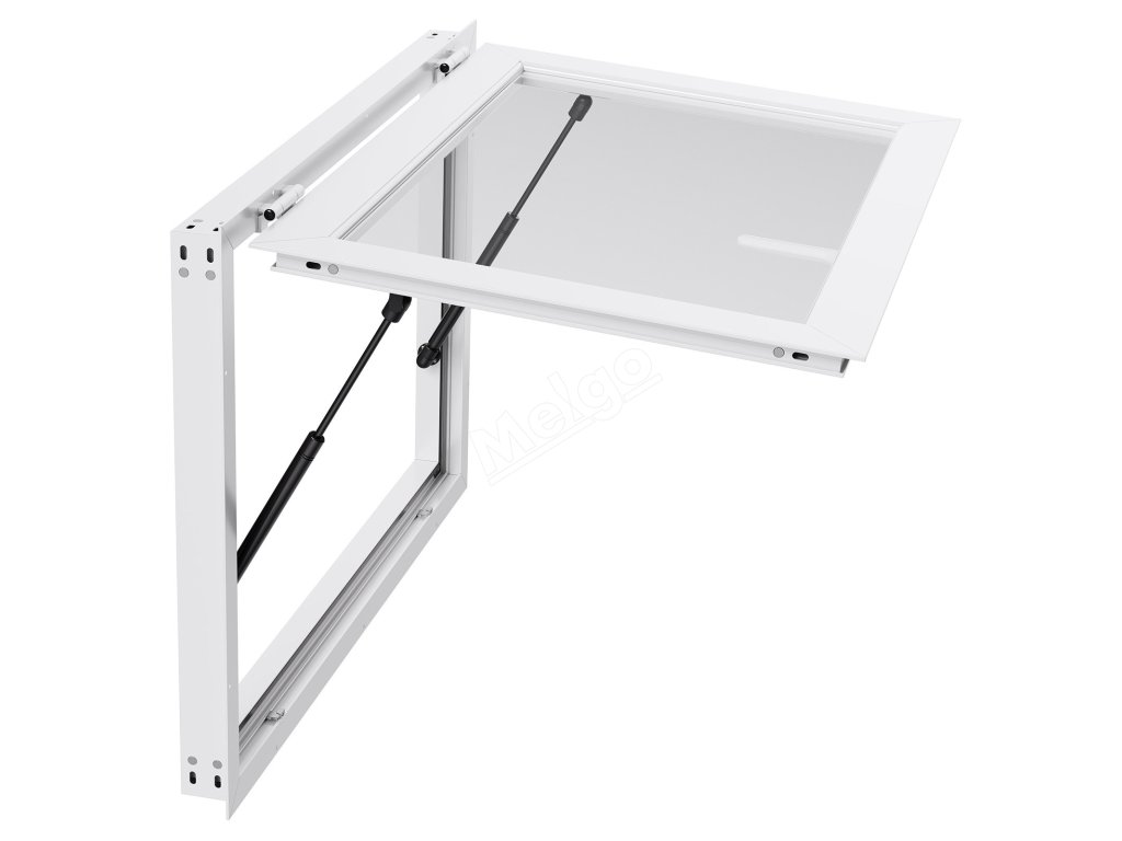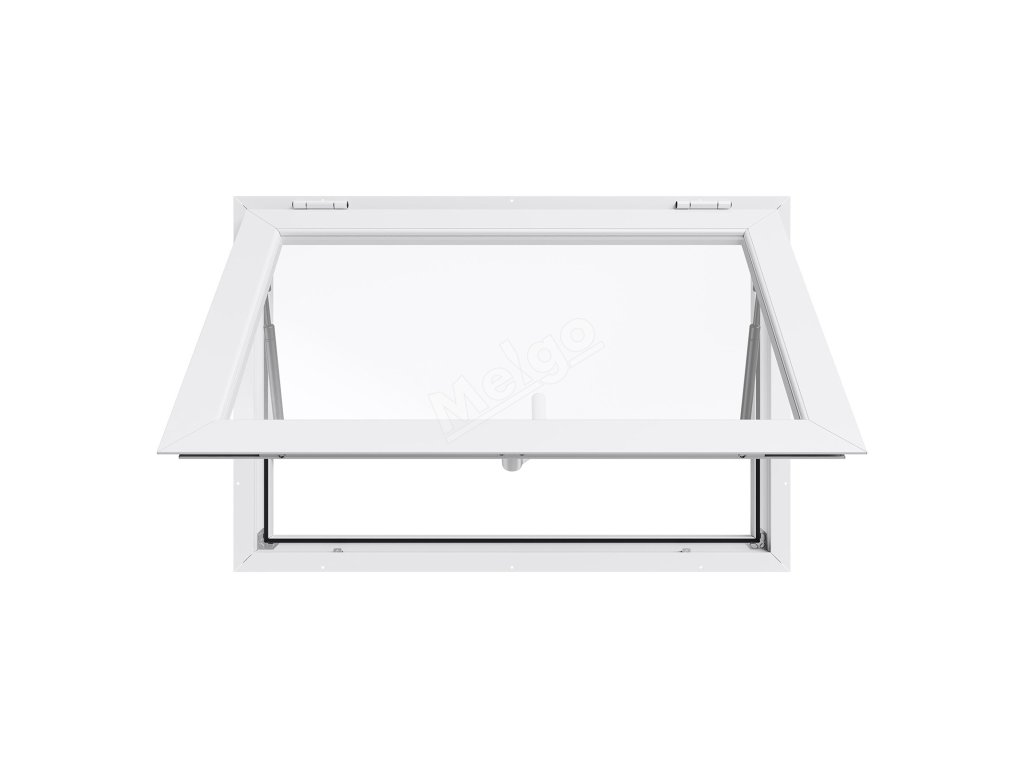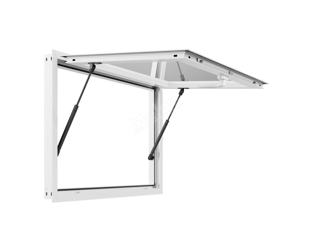Prodejní okno 92×61 cm, hliníkový rám, otevírání do 85°, s markýzou