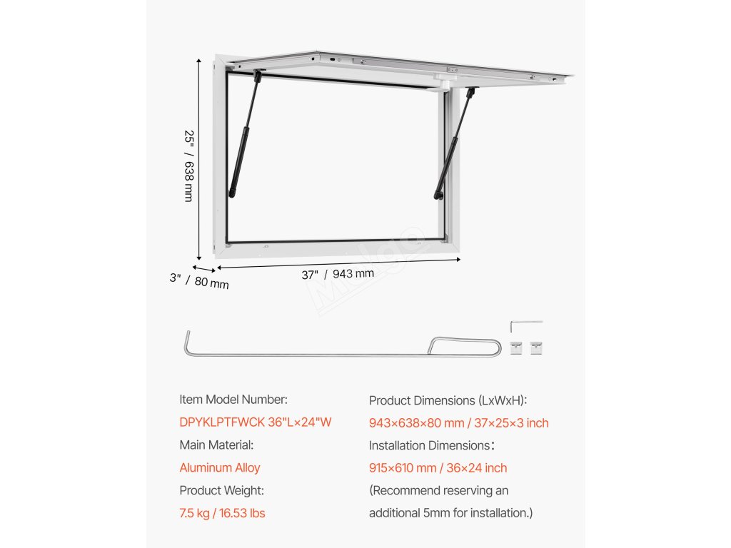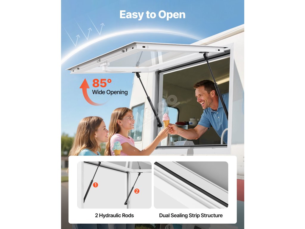 Otázka 1: Jsou rozměry okna přesné? Vejde se do mého vozíku na potraviny?A1: Přísná kontrola rozměrů! Instalační rozměr rámu okna je 915x610 mm / 36x24 palců, vhodný pro standardní otvory potravinářského vozíku/pultíku. Před nákupem si prosím změřte instalační prostor.Q2: Je akrylát (PMMA) náchylný k prasknutí nebo poškrábání? A2: Vysoce odolný! Vylepšený 4mm akrylát PMMA nabízí vyšší odolnost proti nárazu než běžné sklo, vydrží nárazy od potravinářských vozíků a drsné prostředí, jako je vysoké teplo a olejové výpary.Q3: Mohou hydraulické tyče stabilně udržet úhel otevření 85°?A3: Dvojité hydraulické tyče poskytují silnou podporu! Díky použití hydraulických tyčí řady 420 (zdvih 150 mm) se okno otevírá a zavírá hladce a může zůstat zavěšené v jakémkoli úhlu - ideální pro scénáře častého používání. 4. otázka: Jsou uzamykací body náchylné ke korozi? 4. otázka: Pozinkovaná antikorozní úprava! Uzamykací body mají povrchovou úpravu ze zinkové slitiny a prošly 72hodinovým testem solnou mlhou, což nabízí lepší odolnost proti korozi než běžné zámky pro dlouhodobé venkovní použití bez obav.Q5: Je součástí balení zástěna? A5: Navrženo pro snadnou údržbu! Tato verze neobsahuje síťku. Povrch okna lze čistit vlhkým hadříkem. Rám má bílou práškovou povrchovou úpravu, která odolává olejovým skvrnám.