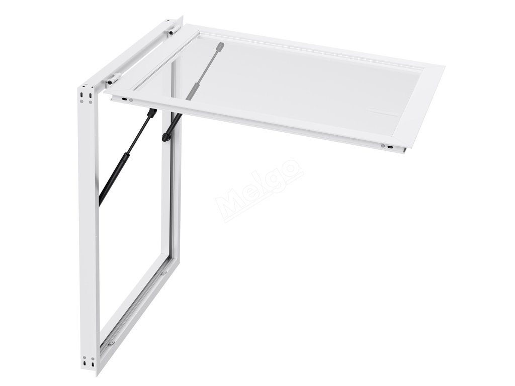 prodejní okno 92×92 cm, hliníkový rám, otevíratelné do 85°, s markýzou