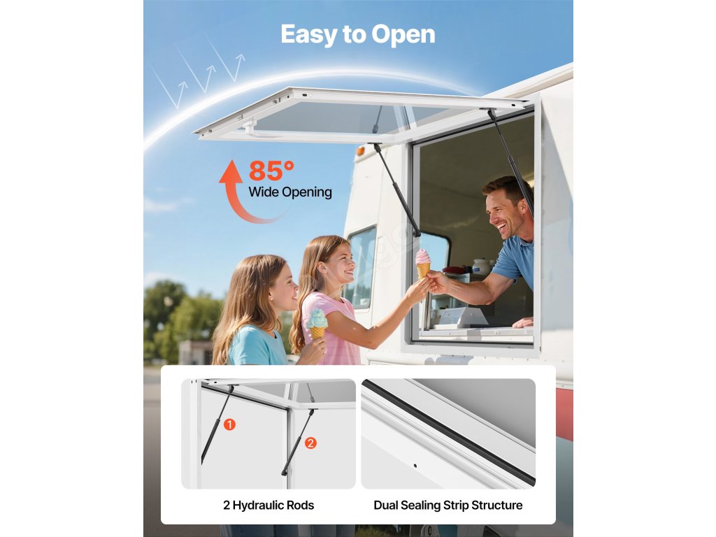 Otázka 1: Jsou rozměry okna přesné? Vejde se do mého vozíku na potraviny?A1: Přísná kontrola rozměrů! Instalační rozměr rámu okna je 915x915 mm / 36x36 palců, vhodný pro standardní otvory potravinářského vozíku/pultíku. Před nákupem si prosím změřte instalační prostor.Q2: Je akrylát (PMMA) náchylný k prasknutí nebo poškrábání? A2: Vysoce odolný! Vylepšený 4mm akrylát PMMA nabízí vyšší odolnost proti nárazu než běžné sklo, vydrží nárazy od potravinářských vozíků i drsné podmínky, jako je vysoké teplo a olejové výpary.Q3: Dokážou hydraulické tyče stabilně udržet úhel otevření 85°?A3: Dvojité hydraulické tyče poskytují silnou oporu! Díky použití hydraulických tyčí řady 420 (zdvih 150 mm) se okno otevírá a zavírá hladce a může zůstat zavěšené v libovolném úhlu - ideální pro scénáře častého používání. 4. otázka: Jsou uzamykací body náchylné ke korozi? 4. otázka: Pozinkovaná antikorozní úprava! Uzamykací body mají povrchovou úpravu ze zinkové slitiny a prošly 72hodinovým testem solnou mlhou, což nabízí lepší odolnost proti korozi než běžné zámky pro dlouhodobé venkovní použití bez obav.Q5: Je součástí balení zástěna? A5: Navrženo pro snadnou údržbu! Tato verze neobsahuje síťku. Povrch okna lze čistit vlhkým hadříkem. Rám má bílou práškovou povrchovou úpravu, která odolává olejovým skvrnám.