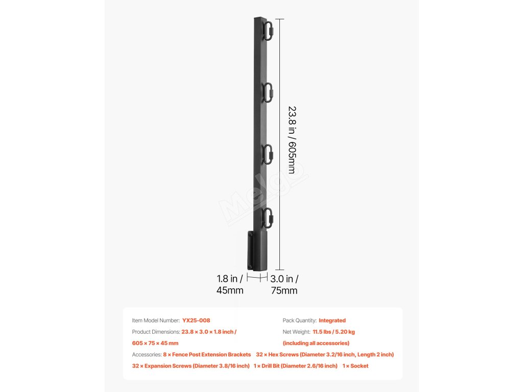 Tyto nástavce plotových sloupků zvyšují vertikální výšku vašeho dvora, trávníku nebo výběhu pro domácí zvířata - jsou ideální pro zvýšení soukromí a zabránění skákání nebo útěku domácích zvířat. Jsou vyrobeny z odolné oceli s práškovým nástřikem pro dlouhotrvající venkovní použití. Obsahuje veškerý potřebný hardware pro rychlou a snadnou instalaci.