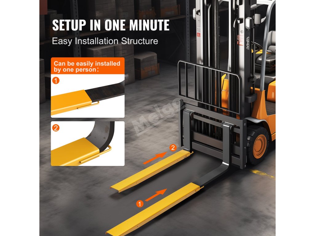 Naše nástavce pro vysokozdvižné vozíky jsou navrženy tak, aby byly uživatelsky přívětivé. Nepotřebujete sadu nářadí ani inženýrské vzdělání! Jejich instalaci zvládnete během minuty, ať už jste profesionál, nebo začátečník.