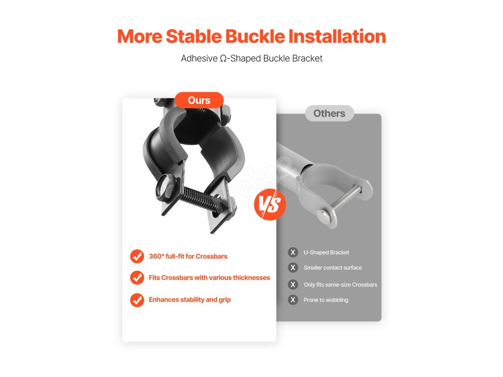 Oproti standardním U-konzolám se zdokonalená konstrukce Ω hodí pro různé kulaté kolejnice (1,3"-1,5") a těsně se přizpůsobí oblouku. Přidaný lepicí podklad zvyšuje přilnavost a stabilitu a omezuje pohyb při větru nebo dešti.