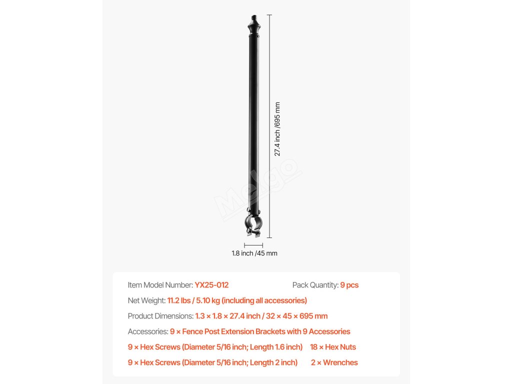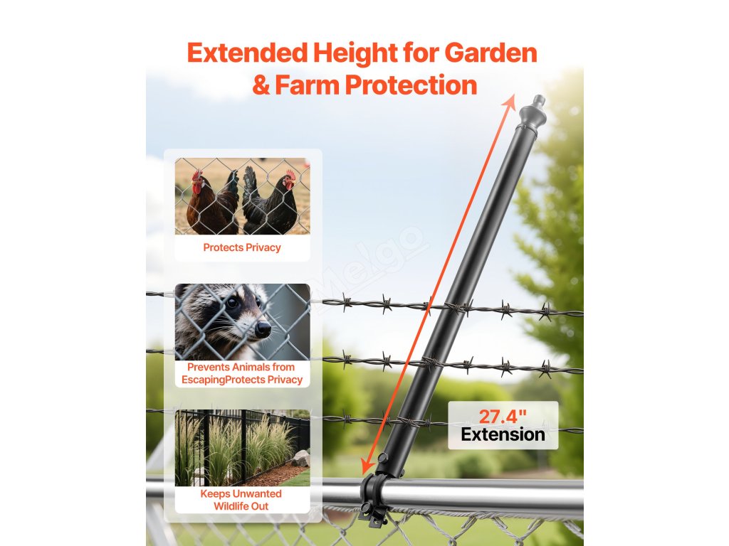Tyto nástavce plotových sloupků zvyšují výšku vaší zahrady, trávníku nebo výběhu pro domácí zvířata - jsou ideální pro zvýšení soukromí a zabránění skákání nebo útěku domácích zvířat. Jsou vyrobeny z odolné práškově lakované oceli a jsou konstruovány tak, aby vydržely venku. Dodávají se s veškerým montážním příslušenstvím pro rychlé sestavení.