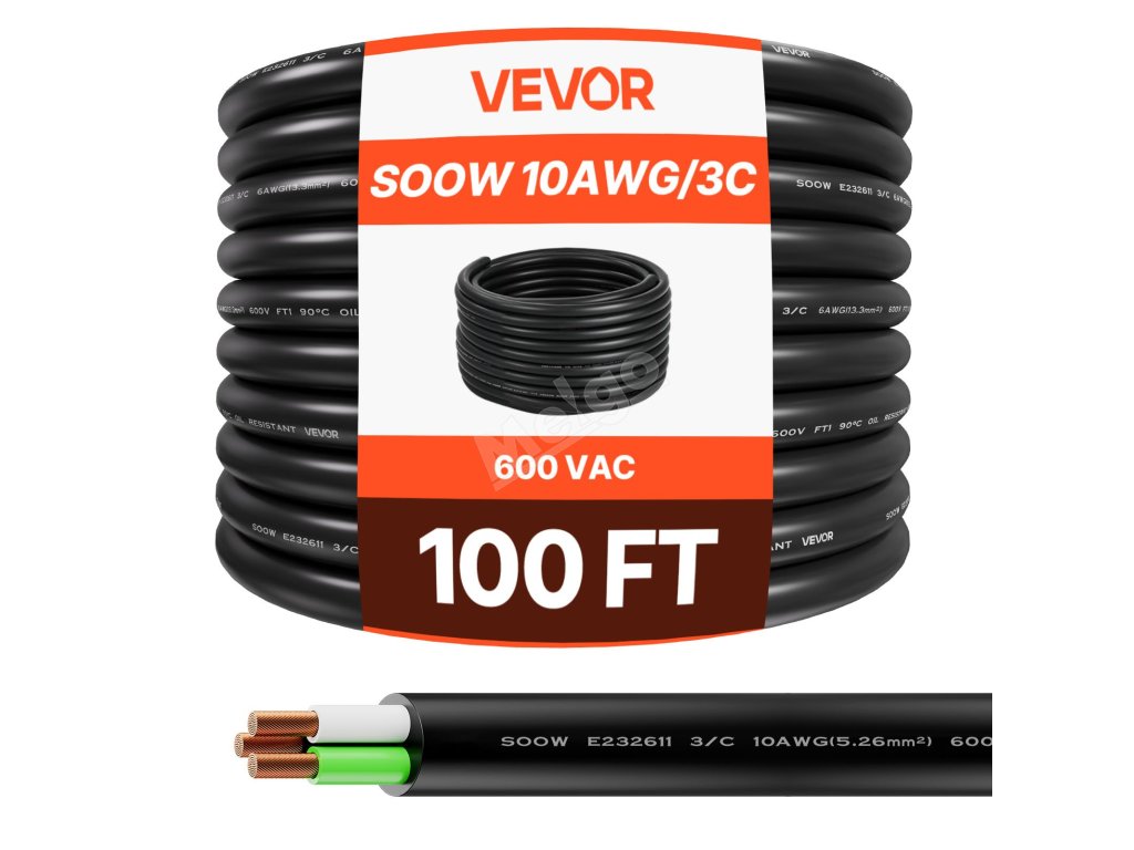 Prodlužovací elektrický kabel 30,48 m dlouhý 10 awg (6 mm²) měděný