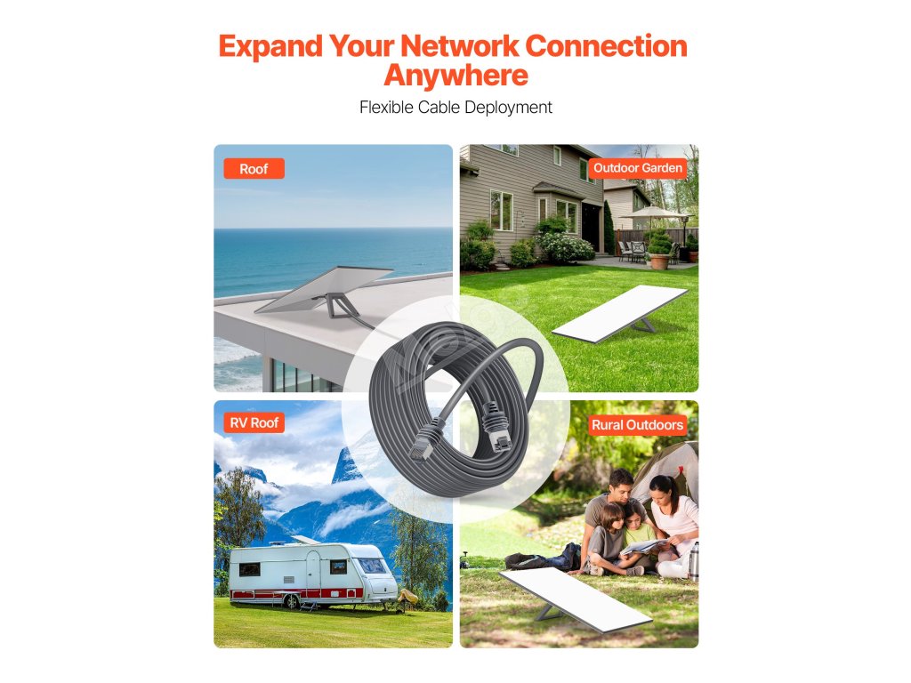 Tento extra dlouhý prodlužovací kabel Starlink je všestranný, vhodný pro cesty karavanem, na lodi, při kempování i na zahradě. Vychutnejte si bezproblémové připojení k internetu kdykoli a kdekoli, takže je ideální pro rodinné aktivity v přírodě, práci na dálku a další aktivity.