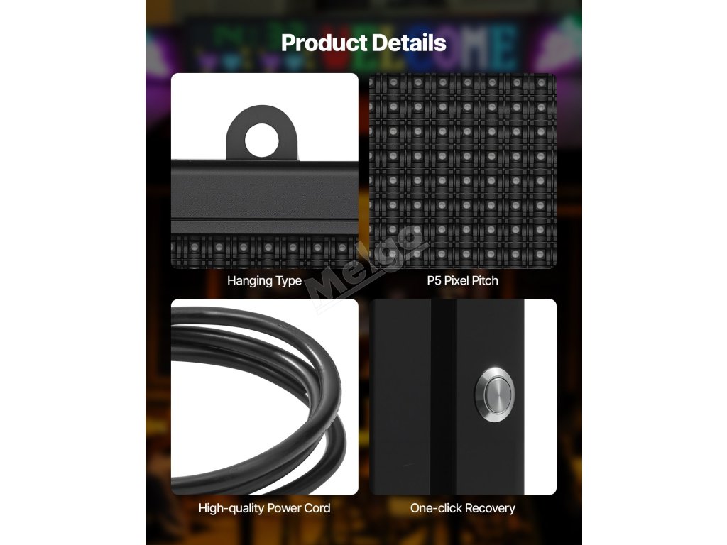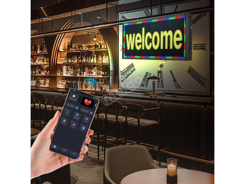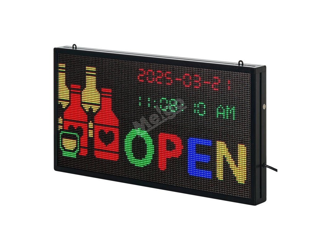 Podporuje rolovanie textu, časy a GIF. Farebné, dynamické zobrazenia textu upútajú pozornosť okoloidúcich.