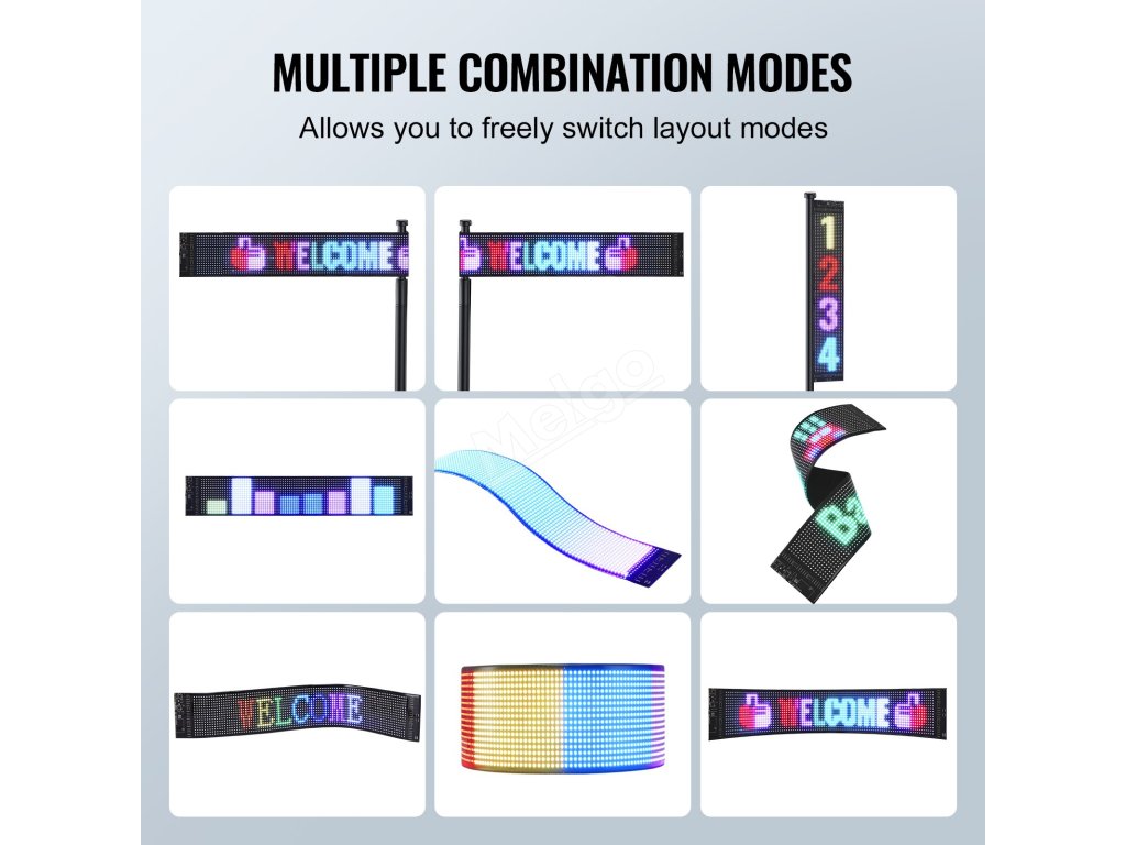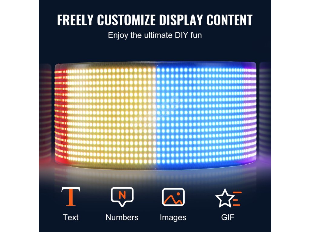 Můžete si navrhnout vlastní text, vzory a GIFy podle vlastních potřeb a scénářů a také upravit jas a rychlost tak, aby dokonale vyhovovaly vašim požadavkům.