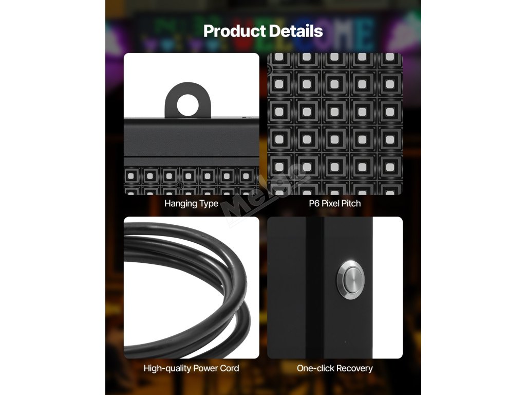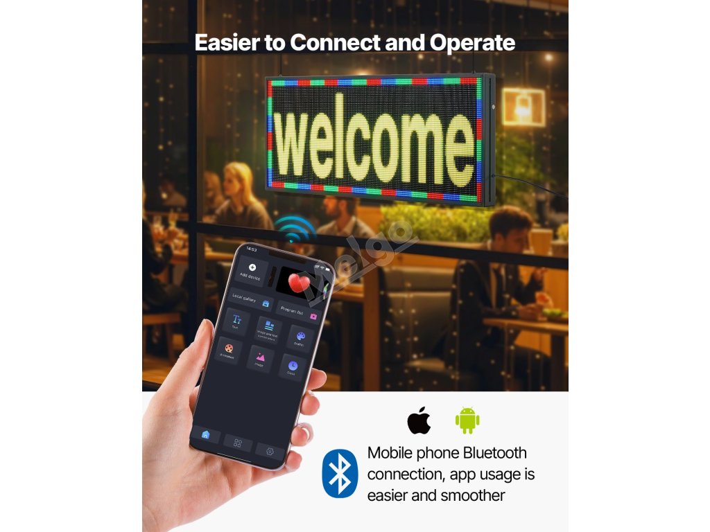 Podporuje rolovanie textu, časy a GIF. Farebné, dynamické zobrazenia textu upútajú pozornosť okoloidúcich.
