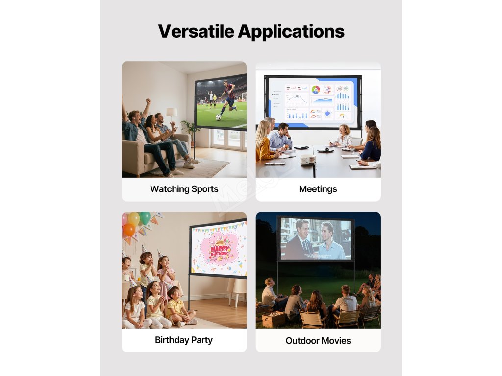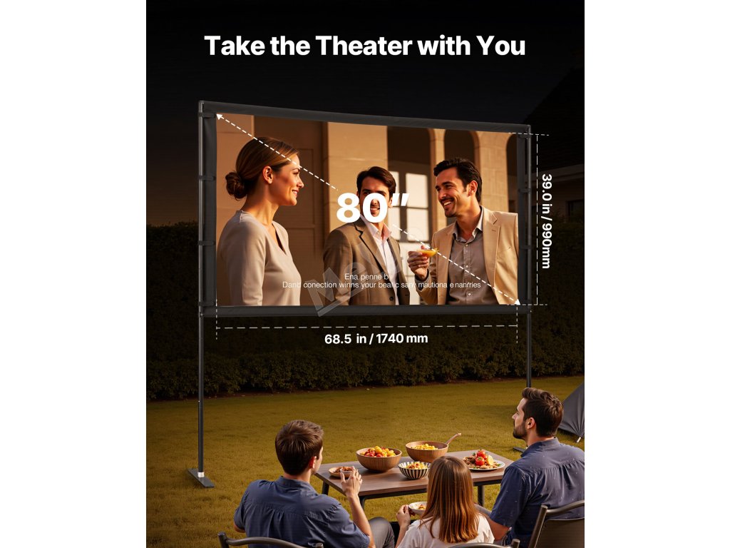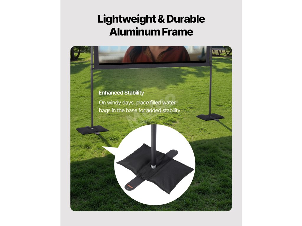 Toto venkovní filmové plátno je navrženo tak, aby poskytovalo jasný obraz s vysokým rozlišením a sytými barvami. Jeho praktické rozměry a odolná konstrukce vám umožní vychutnat si filmový zážitek s rodinou a přáteli v interiéru i exteriéru.