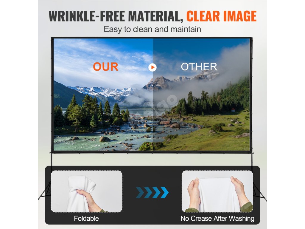 Naše promítací plátno se stojanem se vyznačuje materiály, které se snadno čistí, což zajišťuje čistý obraz a celkový zážitek ze sledování.