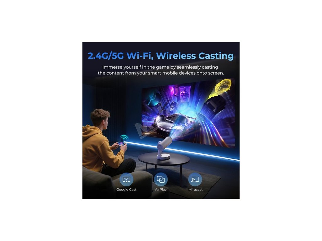 Plně utěsněná optická jednotka projektoru je navržena s ohledem na odolnost a zabraňuje znečištění způsobenému prachem, čímž prodlužuje životnost projektoru. Díky špičkové technologii Bluetooth 5.0 a bleskově rychlé 5G WiFi si uživatelé projektoru Starfish Plus mohou vychutnat bohaté a pohlcující zvukové efekty, které skutečně pozvednou jejich zvukový zážitek, streamovat videa v ultra vysokém rozlišení bez vyrovnávací paměti a užívat si herní zážitky bez zpoždění.