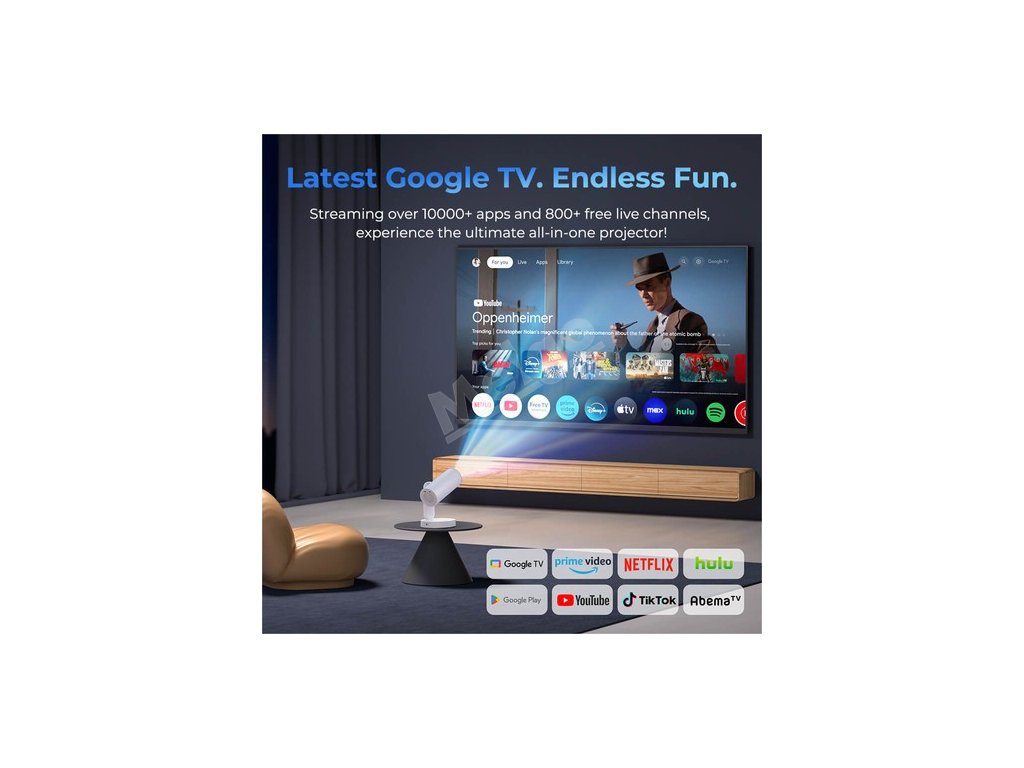 Projektor ETOE Starfish Plus je vybaven nejmodernějším systémem Google TV certifikovaným společnostmi Netflix a Google. Zažijte vzrušující zážitek z dekódování videa v rozlišení 4K, které oživí vaše oblíbené pořady a filmy s ohromující čistotou. Díky přístupu k více než 10 000 aplikacím včetně oblíbených služeb, jako jsou Netflix, Prime Video a YouTube, je vždy na co se dívat. Vestavěné funkce AirPlay a Chromecast vám umožní bez námahy streamovat nebo zrcadlit obsah z vašich zařízení na 150" rozlehlé obrazovce, díky čemuž se každé setkání nebo venkovní párty stane živým a poutavým zážitkem.