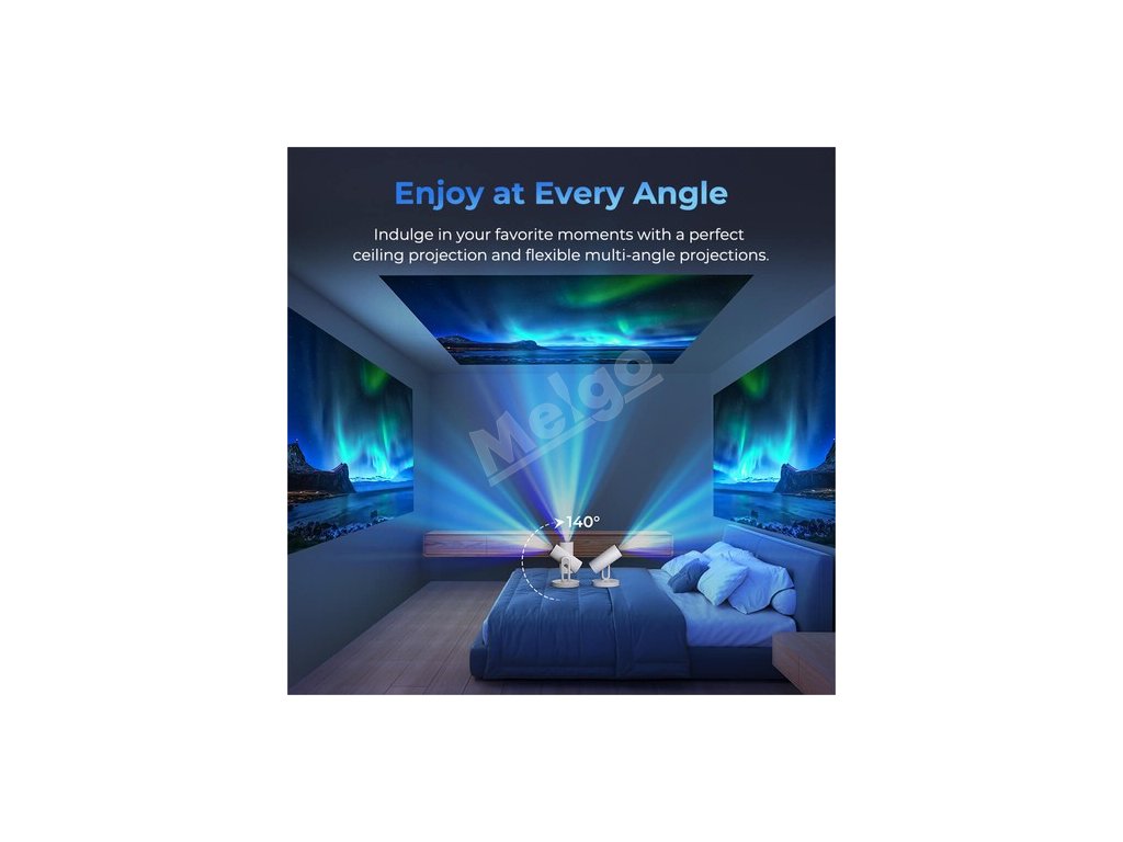 Díky působivému nastavení úhlu 140° umožňuje tento projektor promítat obsah na různé povrchy, ať už jde o strop, šikmou půdu, šikmé stropy nebo zřídka používaná zákoutí ve vaší domácnosti. Pokročilá funkce automatické korekce lichoběžníkového zkreslení plynule upravuje obraz, koriguje zkreslení a zajišťuje pokaždé dokonale tvarovanou projekci, čímž povyšuje zážitek ze sledování na vynikající.