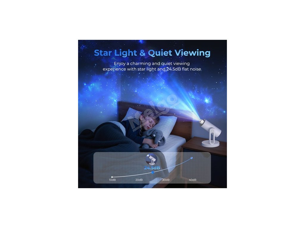 Projektor ETOE Starfish Plus je víc než jen zobrazovací zařízení; je také vybaven důmyslným nočním světlem s dotykovým senzorem. Tato inovativní funkce umožňuje bezproblémové ovládání, takže jej můžete jednoduše zapnout a nastavit barvu a jas podle svých preferencí. Nabízí dostatek světla ideálního pro hledání předmětů ve tmě, slouží jako uklidňující světlo pro kojící děti a v ložnici vytváří uklidňující atmosféru pro relaxaci.