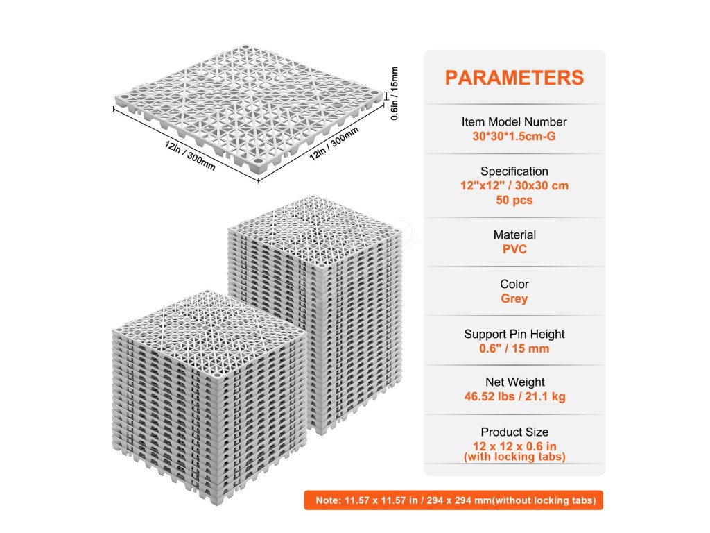 Propojitelné pvc podložky s odtokovými otvory 50 ks 30×30 cm šedé