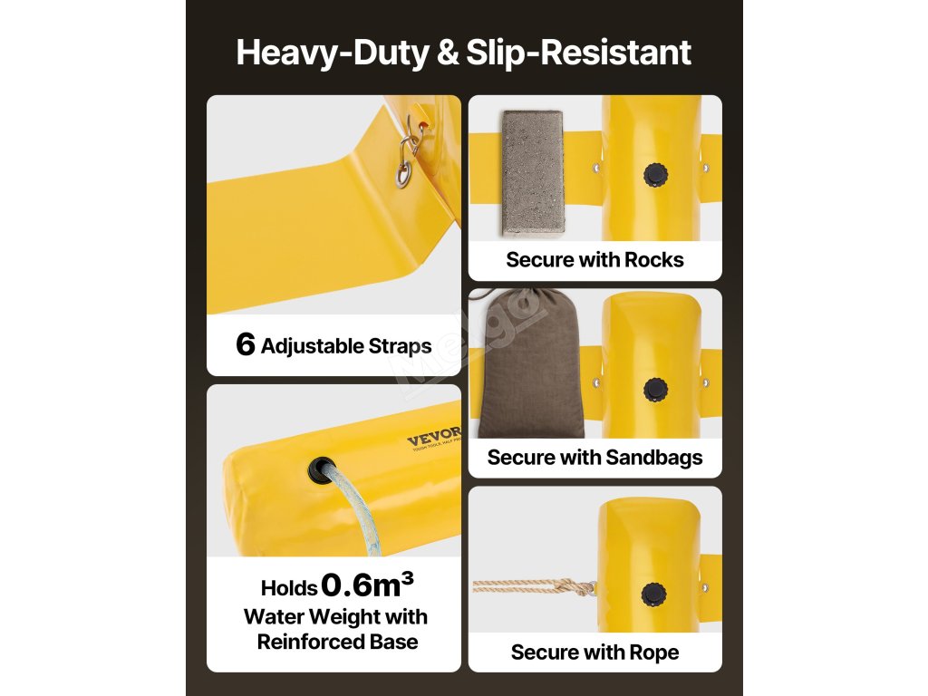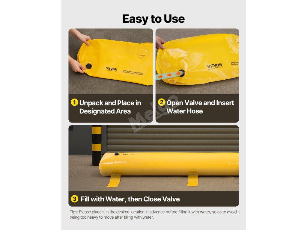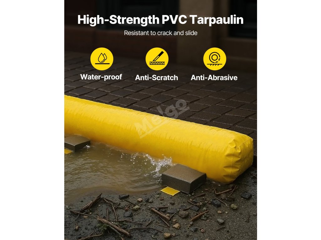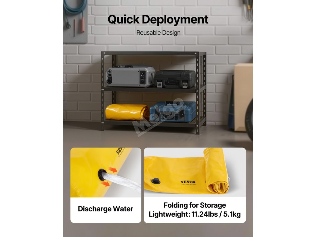 Dodává se s odpovídající velikostí: 12'D x 20 "Š x 12 "V. Naše protipovodňová zábrana pojme až 132 galonů a po naplnění váží 1113 liber. Vytváří dlouhou bariéru pro kontrolu vody a pomáhá vám snížit riziko poškození majetku.